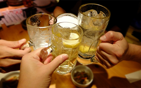 月に一度、目標を達成した仲間と食事会をします。この日は思いっきり食べて飲んで仲間と思いを共有しています。